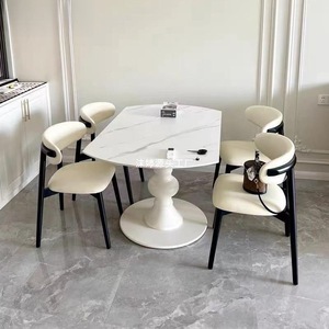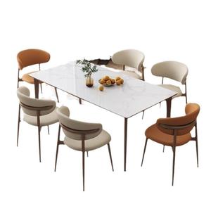 法式北欧仿木餐椅家用现代简约网红酒店餐厅轻奢软包靠背椅铁艺椅