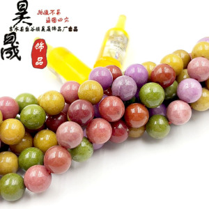 七彩阿拉善玉髓圆珠散珠半成品手链diy饰品配件阿拉善玛瑙串珠子
