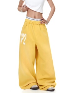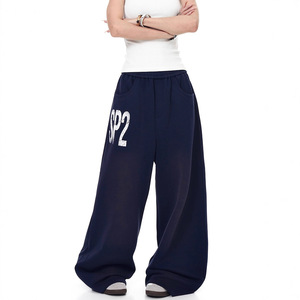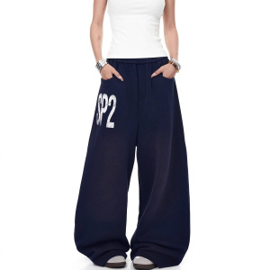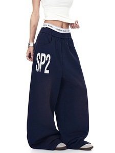 美式复古松紧腰字母印花运动卫裤男女2025夏季新款宽松阔腿休闲裤