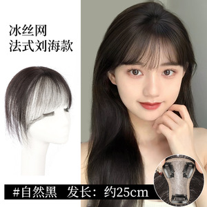 肤色冰丝网假发片真人发丝全手织头顶补发块轻薄透气假刘海补发片