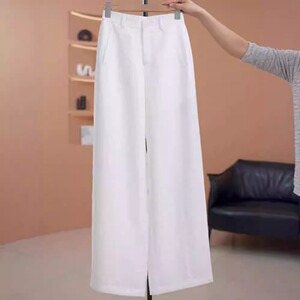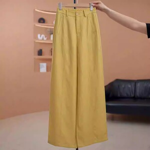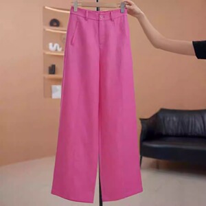 2025夏季款大码女装韩系简约玫红色阔腿裤女梨型身材小个子直筒裤
