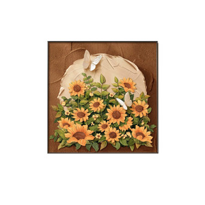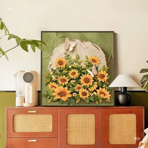 中古风向日葵桌面摆画肌理画感斗柜电视柜床头柜挂画餐厅壁画