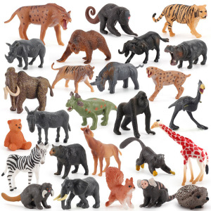 仿真实心野生动物模型老虎大象河马狮子长颈鹿微景观摆件
