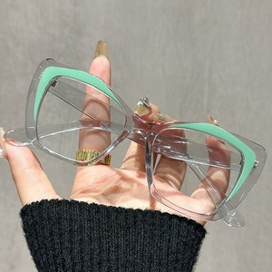 欧美跨境时尚猫眼平光镜 百搭防蓝光电脑眼镜 流行拼色镜框平光镜