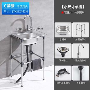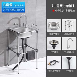 加厚不锈钢简易洗手盆家用厨房洗菜盆单槽带支架洗碗池水槽大单盆