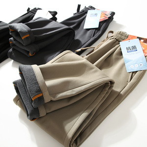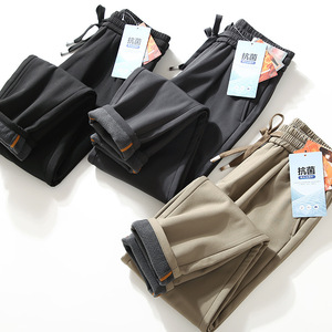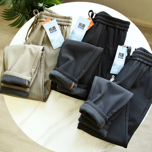 黑科技蓄热面料加绒加厚外贸男装秋冬松紧腰保防风暖小直筒休闲裤