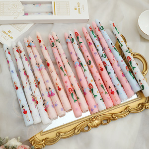 跨境25cm长杆印花蜡烛批发浪漫婚礼情人节美人鱼少女宴会无烟杆蜡