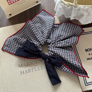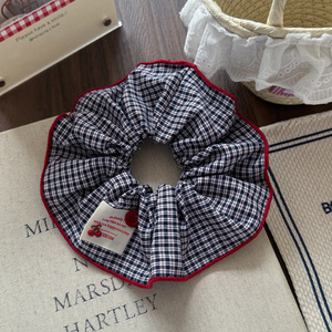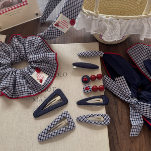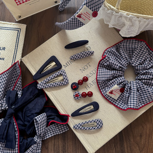 复古红蓝格纹几何bb夹肠圈樱桃少女发饰高级感撞色女孩丸子头发饰