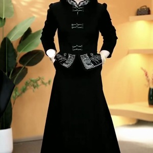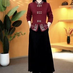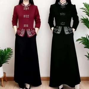 子欧美妈妈装过膝裙刺绣早春假两件时尚新款春秋连衣裙显瘦减龄