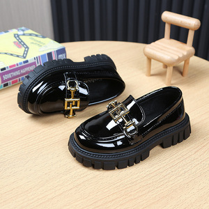 女童皮鞋春款新款儿童亮皮乐福鞋黑色学生鞋时尚一脚蹬单鞋潮