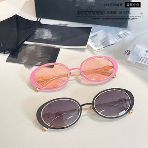 小香家欧美ins小红书同款圆框太阳眼镜女时尚金属墨镜潮男ch9578