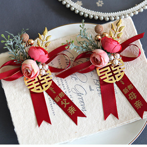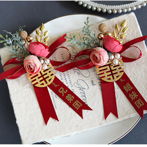 结婚胸花全套一整套父亲母亲简约襟花森系伴郎伴娘香槟色仿真花