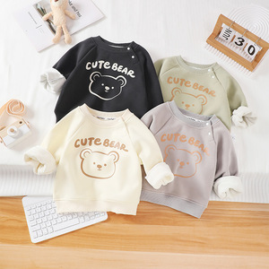 男童小熊印花长袖圆领卫衣春秋婴儿衣服秋装春秋儿童女宝宝打底衫