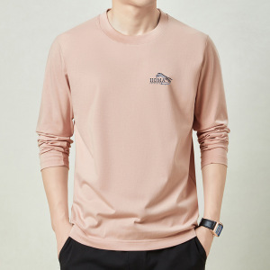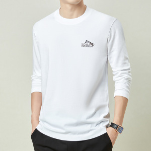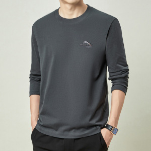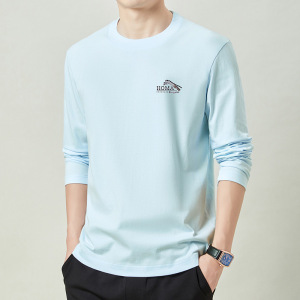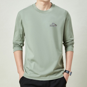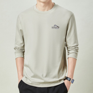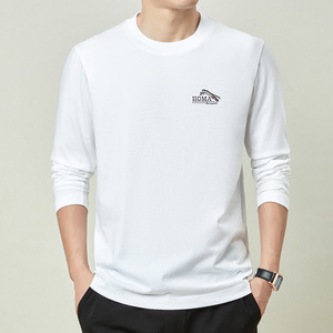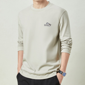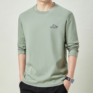 春秋季100%纯棉长袖t恤男士卫衣全棉上衣男款圆领体恤打底衫