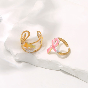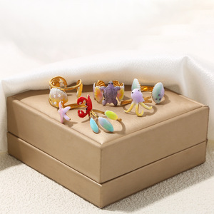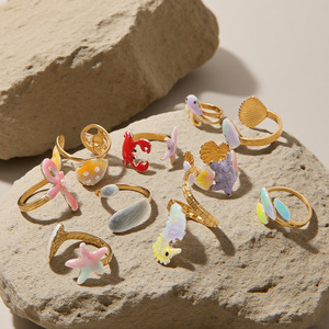海洋风时尚不锈钢开口可调节戒指海马海星贝壳造型小众设计感指环