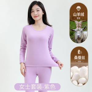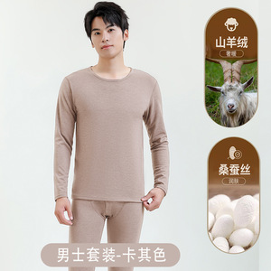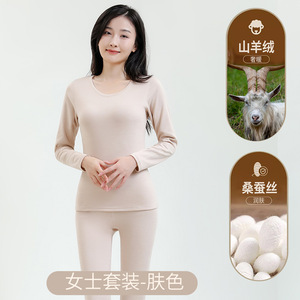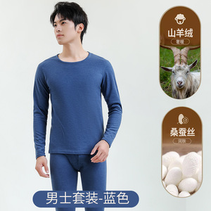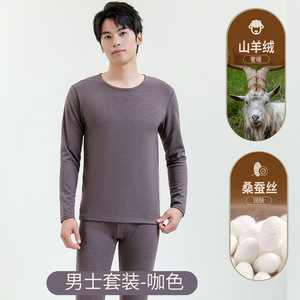 情侣双面绒磨毛保暖内衣套装加绒加厚山羊绒蚕丝德绒秋衣秋裤套装