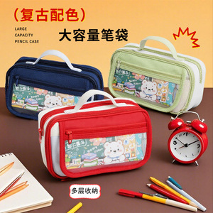 学生大容量ポータブル鉛筆バッグ多機能筆箱文具収納袋レトロカラーペンバッグ文具箱