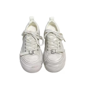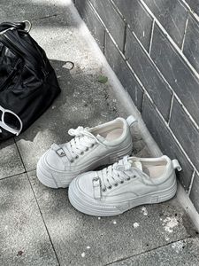欧洲站2025秋季新款真皮厚底增高擦色做旧板鞋女皮带扣休闲小白鞋