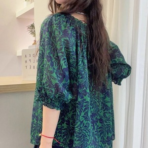 レトロプリントランタンスリーブテンセルシャツレディースヨーロッパステーション2025夏の新スタイルヨーロッパ婦人服洋風シャツ