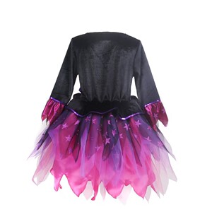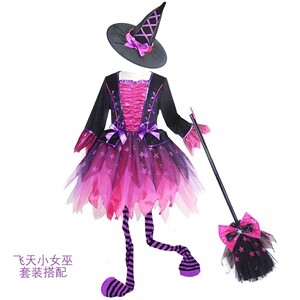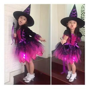 儿童万圣节女巫服装带灯渐变紫星星网纱裙女巫帽舞台表演服