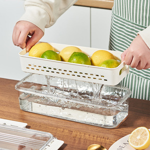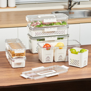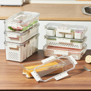 冰箱专用收纳盒分隔保鲜盒水果便当盒PET塑料密封盒套装沥水篮
