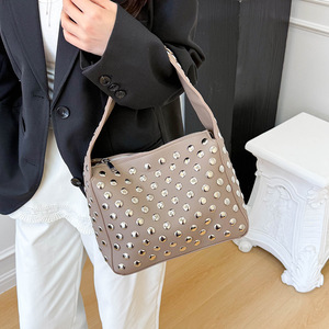 跨境朋克风铆钉手提包包女2025夏季欧美重工复古高级感单肩腋下包