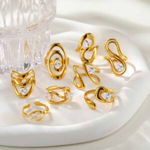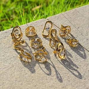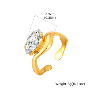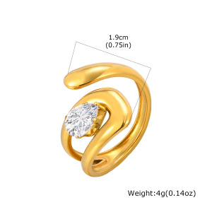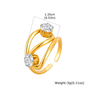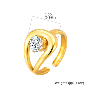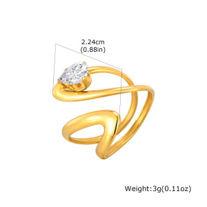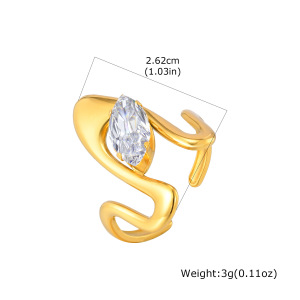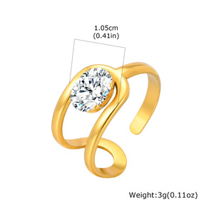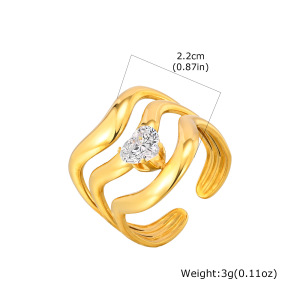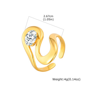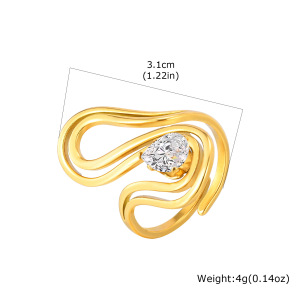 ヨーロッパとアメリカのファッションレディースステンレス鋼ジルコン幾何学ラインオープンリングゴールド調節可能