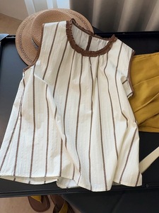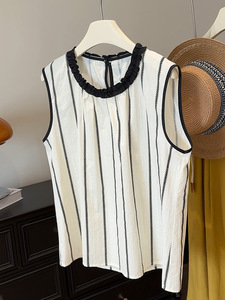 女性のためのハイエンドストライプ薄いノースリーブシャツ 2025 夏の新しいルーズコントラストカラー小さなベスト A5070