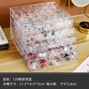 大容量家用整理盒耳环项链手镯耳钉防尘抽屉ins风透明首饰收纳盒