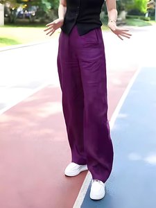 女性のための紫色の綿とリネンのカジュアルパンツ夏の新しい通気性のあるハイウエスト弾性痩身と美白ファッショナブルな気質ストレートパンツ