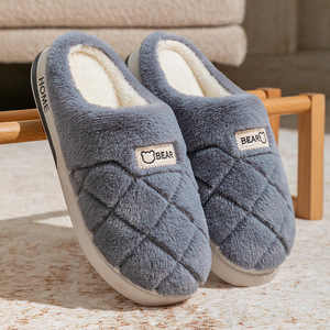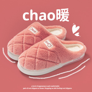 室内居家厚底毛绒秋冬季棉拖鞋保暖加绒情侣寝室酒店月子毛托鞋女