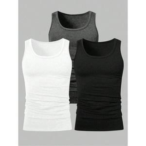 メンズ ソリッド カラー タンク トップ レギュラー フィット カジュアル ノースリーブ T