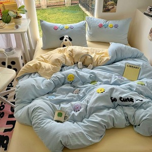 クラスA インタオル刺繍 ウォッシュドコットン 4点セット 漫画 かわいい 掛け布団カバー スーパーソフトベッドシーツ 大学生用ベッドシーツ 3点セット