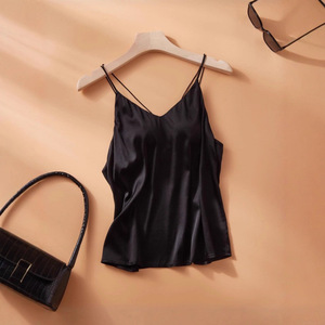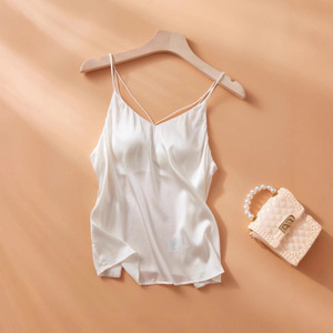 2025欧美跨外穿内搭吊带背心带胸垫女春夏缎面文胸美背一体内衣