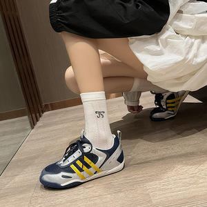 德训鞋女2025春秋新款百搭软底内增高轻便爆款休闲平底拼色运动鞋