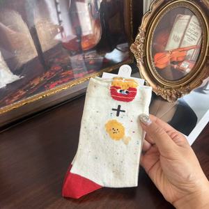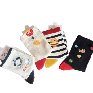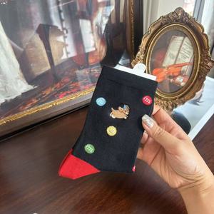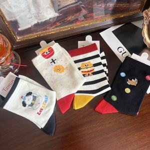 日系春夏袜子女中筒棉袜刺绣集合学生党少女心卡通拼色图案百搭透