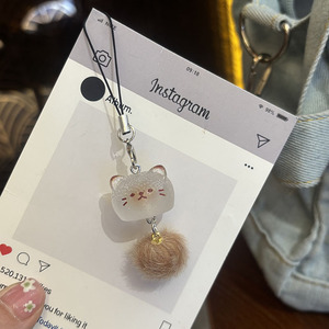 手机绳J82毛绒猫咪卡通挂件手机链钥匙扣学生书包挂饰情侣闺蜜