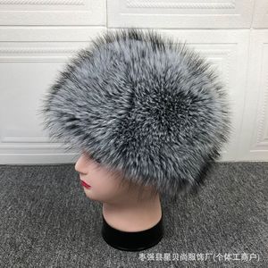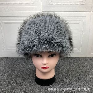 2025跨境双色仿狐狸毛绒帽子大帽秋冬加厚男女帽防寒保暖水桶帽