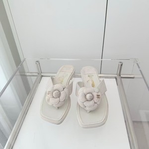 小香风山茶花沙滩凉鞋女2025春夏新款休闲百搭平跟圆头平底一字拖