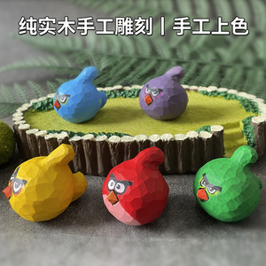 奋斗小鸟工艺品纯手工实木雕刻可爱风客厅办公室桌面摆件创意家居
