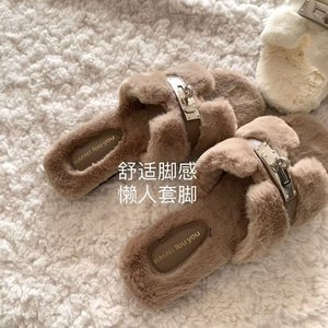 毛茸茸~小金扣外穿毛毛鞋女秋冬2025新款加厚加绒毛毛拖鞋棉鞋