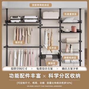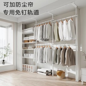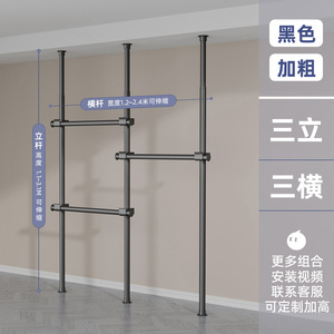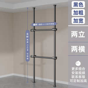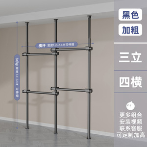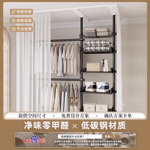 顶天立地置衣架卧室晾挂衣架免打孔开放式衣帽间衣架落地金属衣柜
