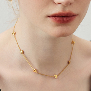 【XKN0059】竖款8个爱心 项链 金色