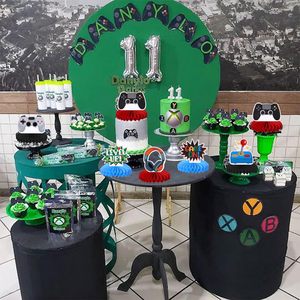 ゲームテーマの誕生日パーティーケーキデコレーションインサートハンドルゲームコンソールヘッドセットカップケーキデコレーションインサート