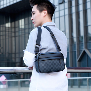 男士斜挎包2025新款百搭潮包通勤格子包休闲时尚单肩包男跨境批发