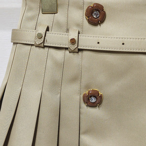 1件起批2025秋女装 卡其色双排扣高腰显瘦休闲百褶半身裙S250605