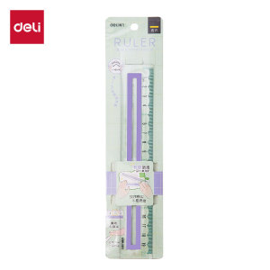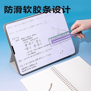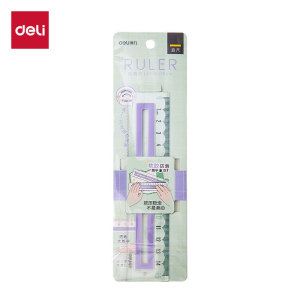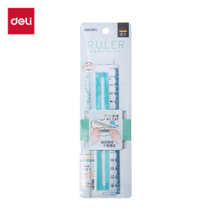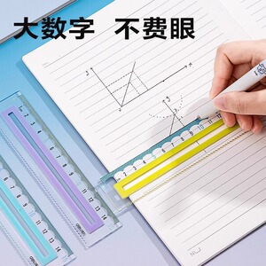 得力V715包胶直尺防滑直尺学生考试绘图测量尺子透明刻度尺带波浪