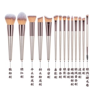 跨境厂家批发14支香槟金化妆刷全套高光散粉刷眼影刷软毛美妆工具