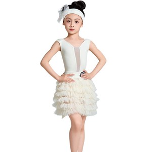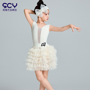 尚裁艺拉丁舞练功服蓬蓬裙女童新款夏季2025白高级感少儿演出套装