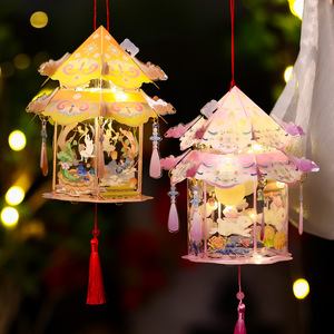中秋節ランタン 2025 新しい手作り diy 材料パッケージ子供のポータブルウサギランタン古代スタイルの宮殿ランタン卸売